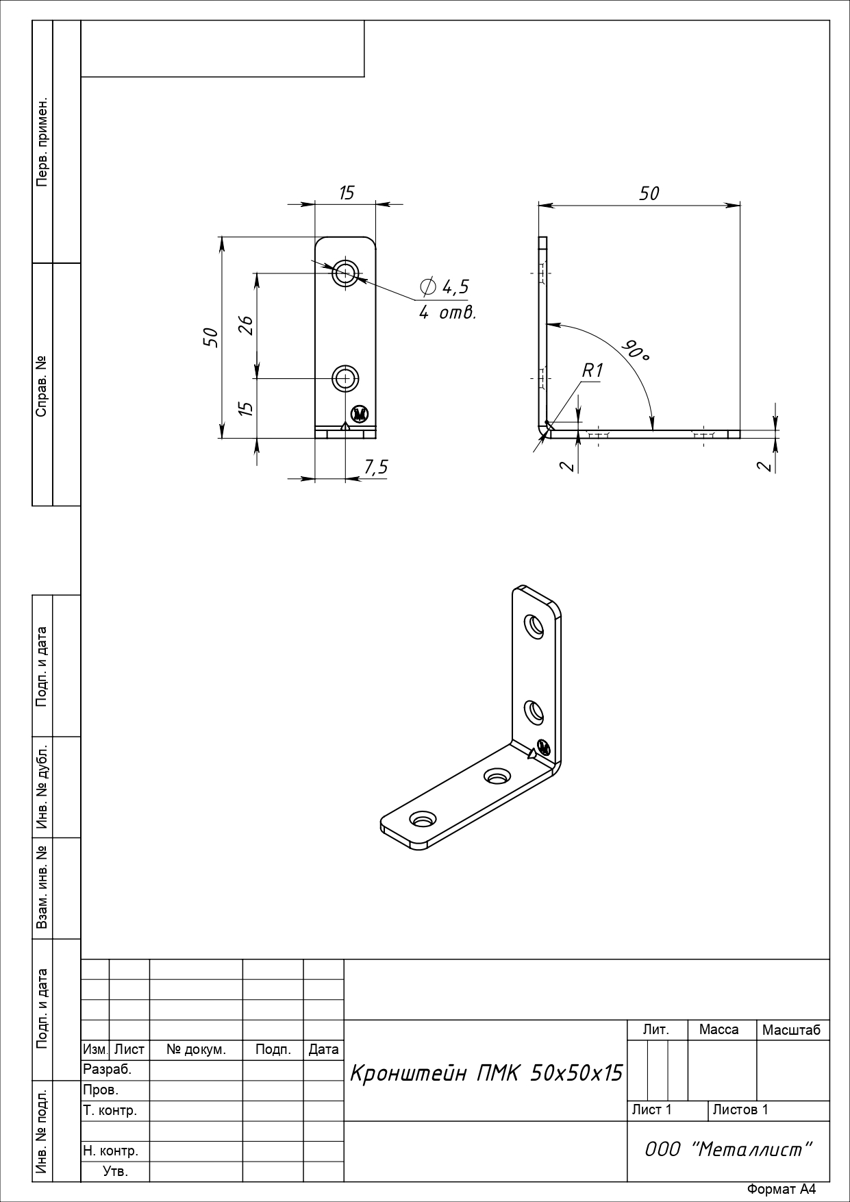 КРОНШТЕЙН ПМК 50*50*15 (прямоугольный) (250 шт.)