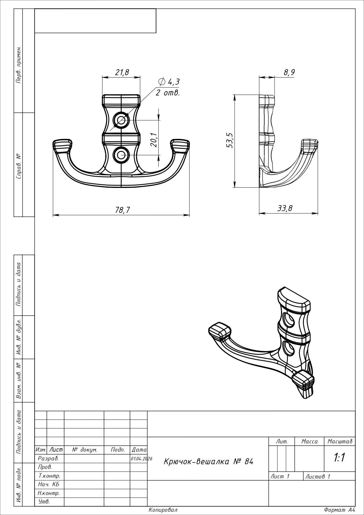 КРЮЧОК-ВЕШАЛКА №84 (40 шт.)