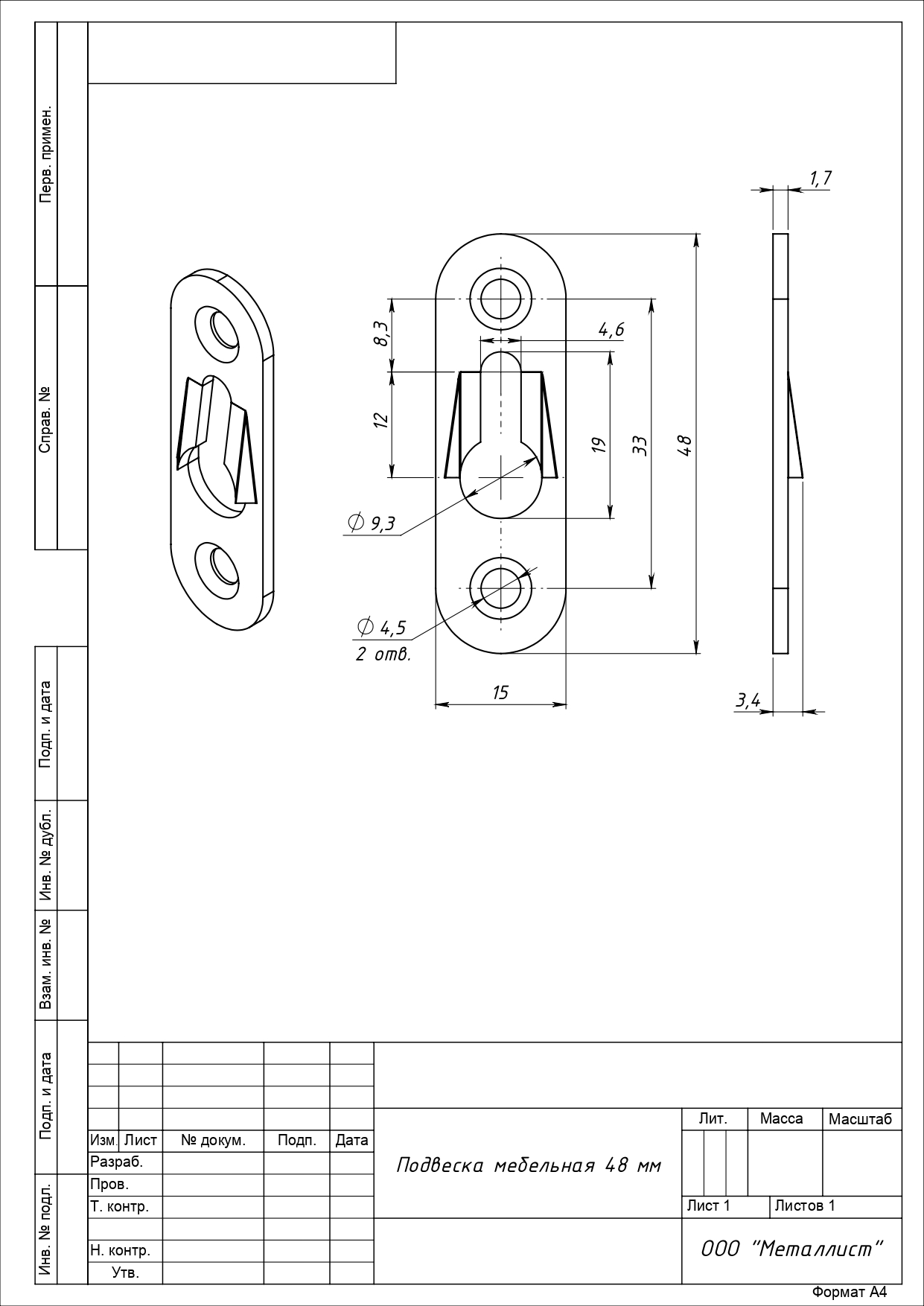 ПОДВЕСКА МЕБЕЛЬНАЯ L-48 мм (1000 шт.)