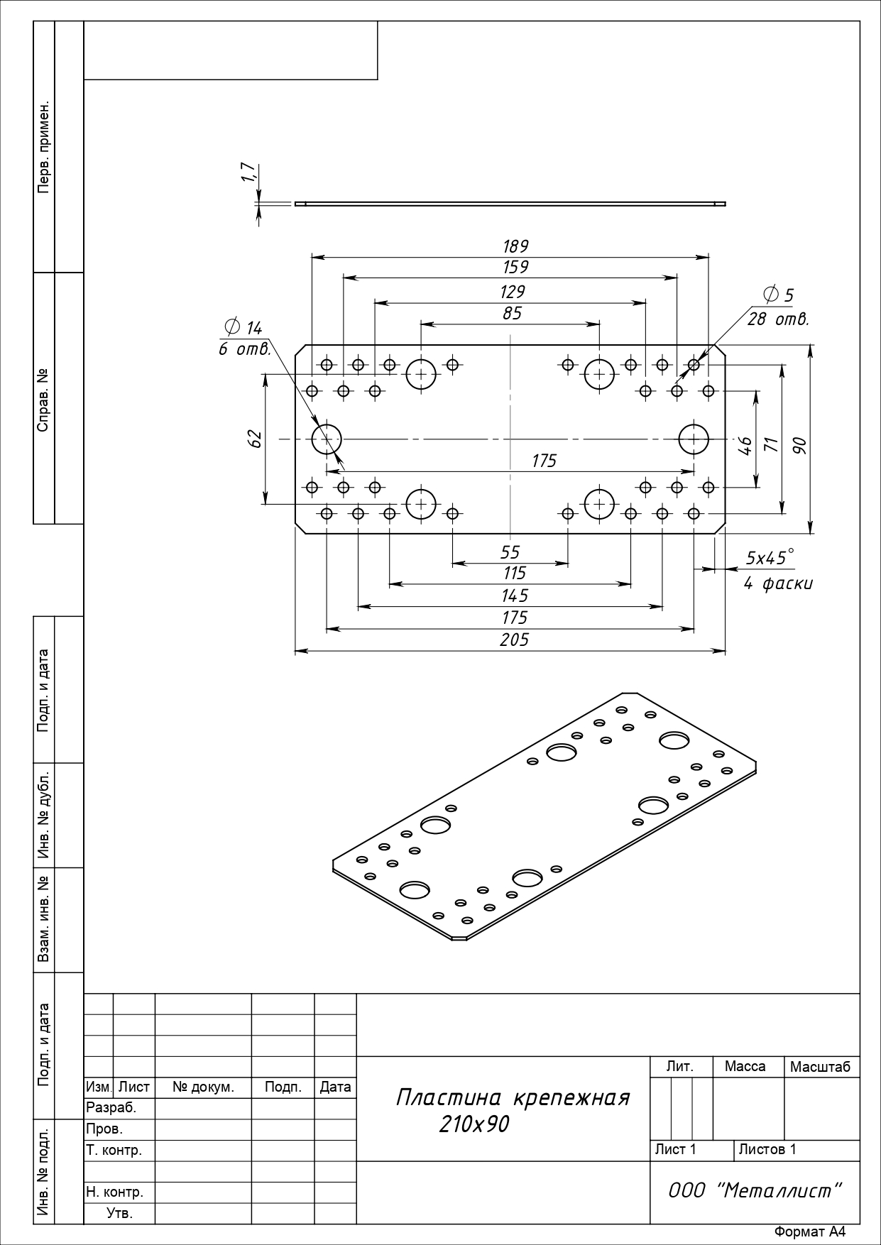 ПЛАСТИНА КРЕПЁЖНАЯ 210*90 (25 шт.)