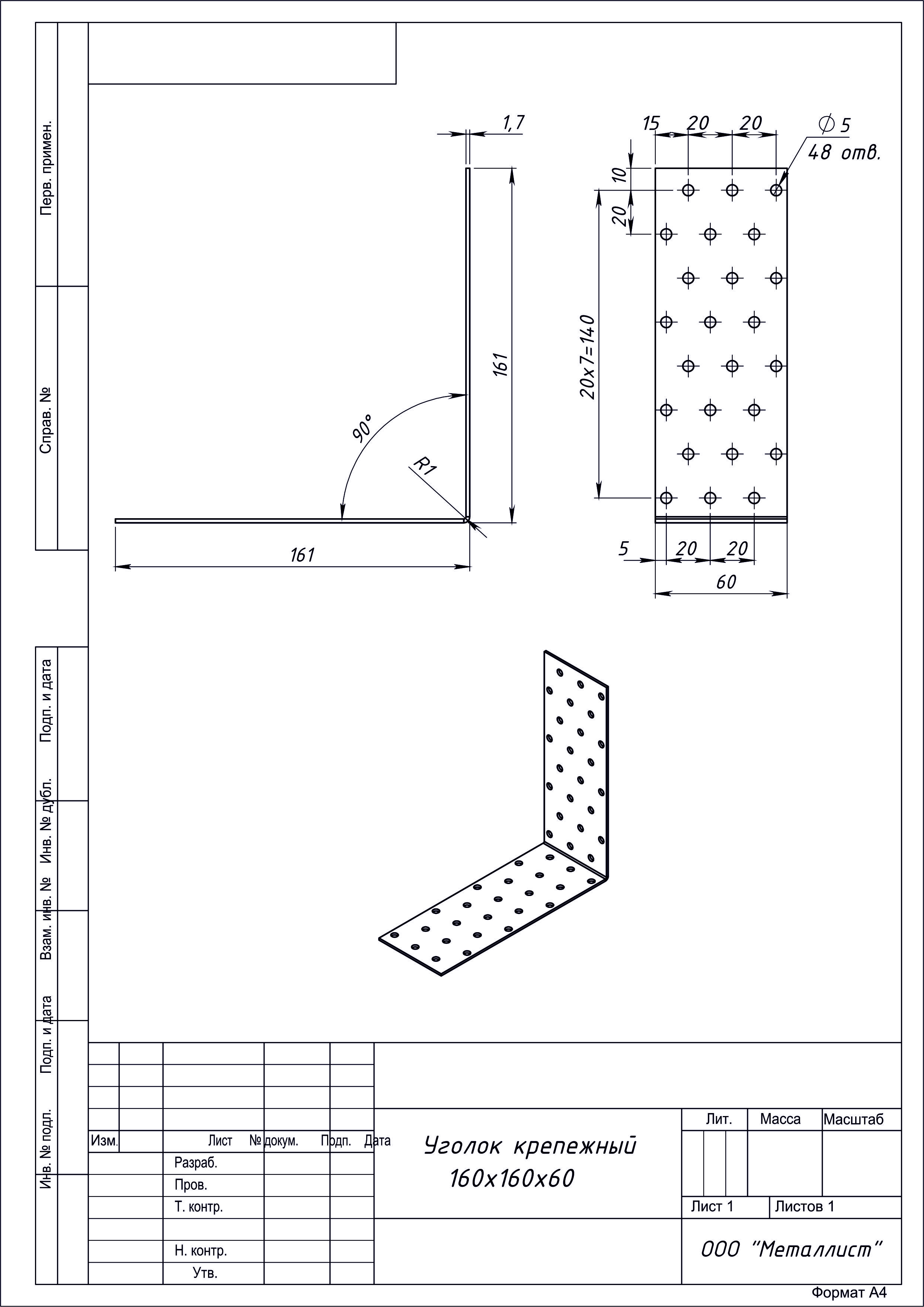УГОЛОК КРЕПЕЖНЫЙ 160*160*60 (20 шт.)