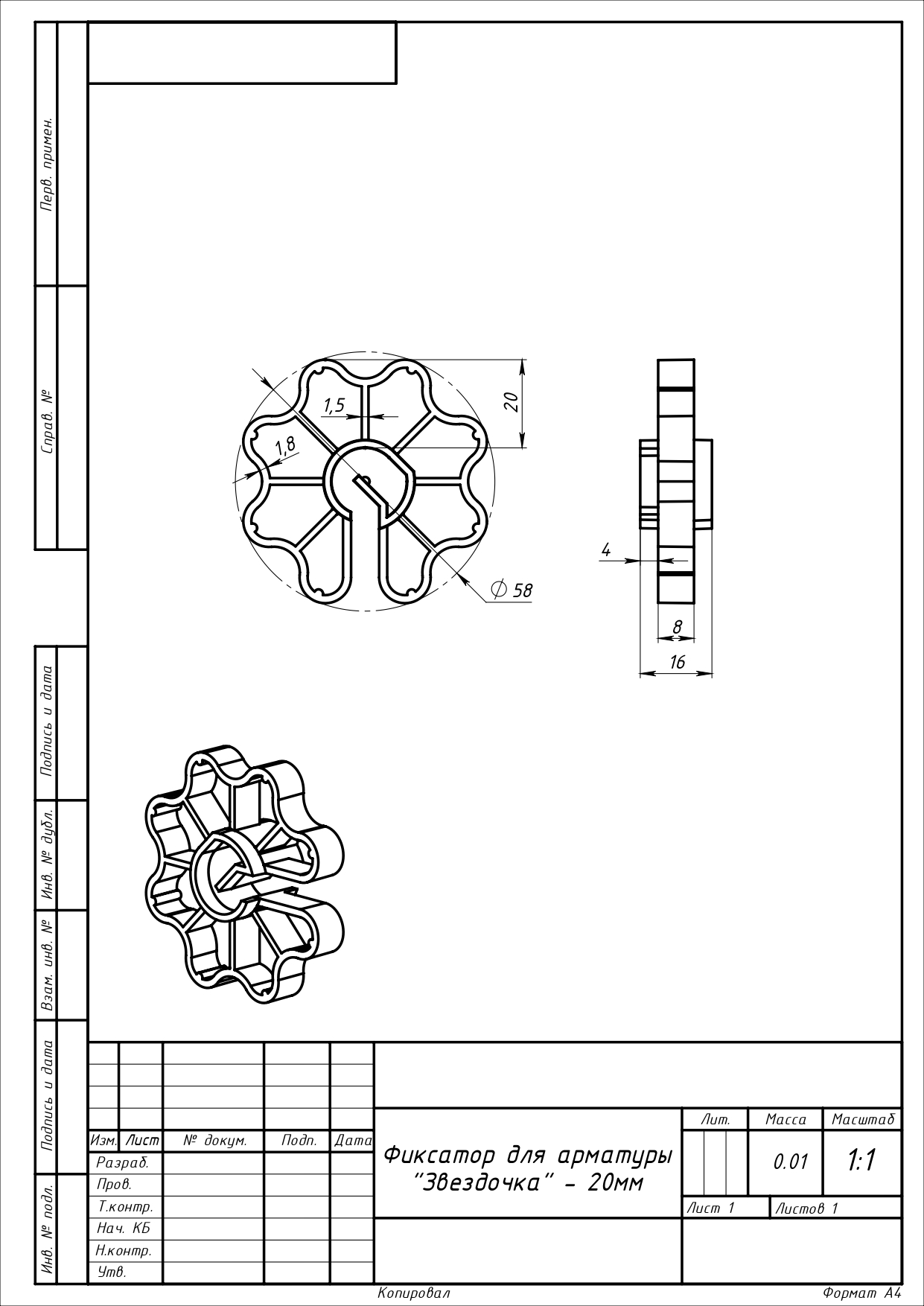 ФИКСАТОР ДЛЯ АРМАТУРЫ "ЗВЕЗДОЧКА" - 20мм / диаметр арматуры от 5-16мм